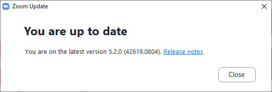 If Zoom auto-updated the client while you weren’t looking, it’ll show that you’re up to date.