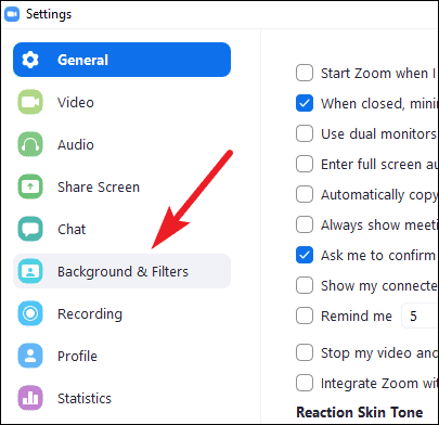 To apply a filter before the meeting, open Zoom app Settings, and go to ‘Background and Filters’ section from the navigation menu on the left.