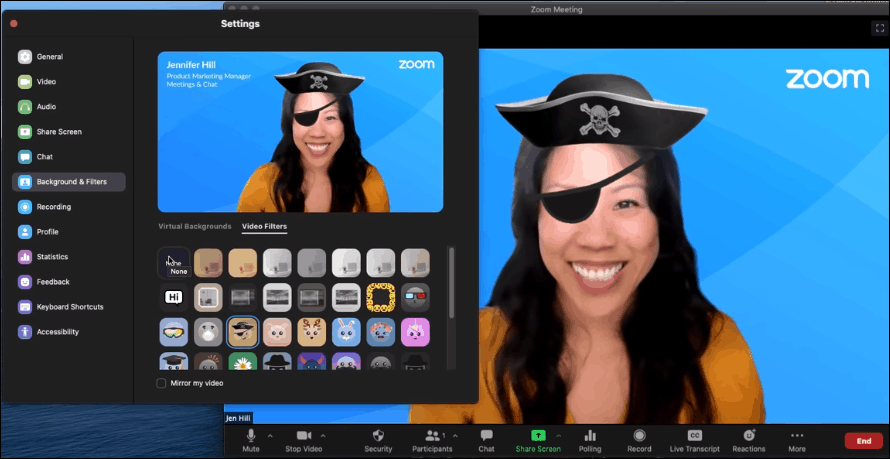 Now you’ve got an additional element to make your meetings, or virtual parties more fun. Become a pirate, or a bunny, or travel to the era of the Noir films and become a character in one of the black-and-white movies – it’s up to you. There are a lot of filters to choose from. The world is your oyster. Go crazy!