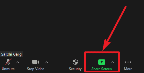 To use the Whiteboard in a Zoom meeting, click on the ‘Share screen’ option on the call toolbar.