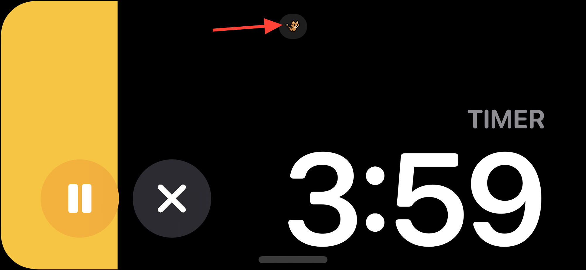 So, in our example here, I had three Live Activities going on – from the Music app, Timer, and the PixelPal app. First, I switched from Music to Timer. Then, the Timer full screen displays the PixelPal activity in minimal mode. If I want to view the Music Live Activity, I'll first have to go to PixelPal full screen.