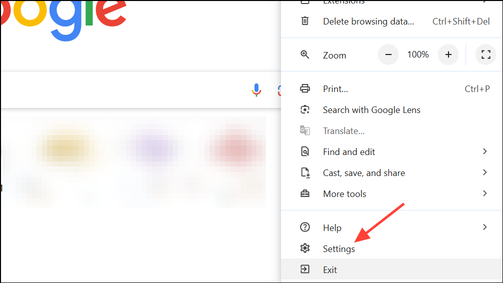 Step 2: Select Settings from the dropdown menu. The Settings page lets you configure browser preferences, including password management.