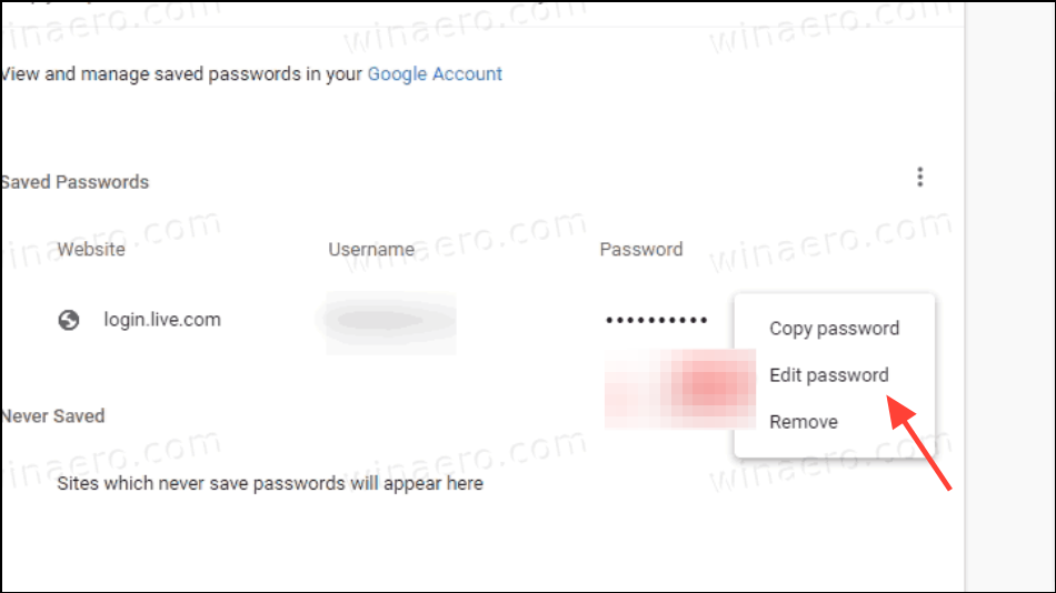 Editing a Saved Password