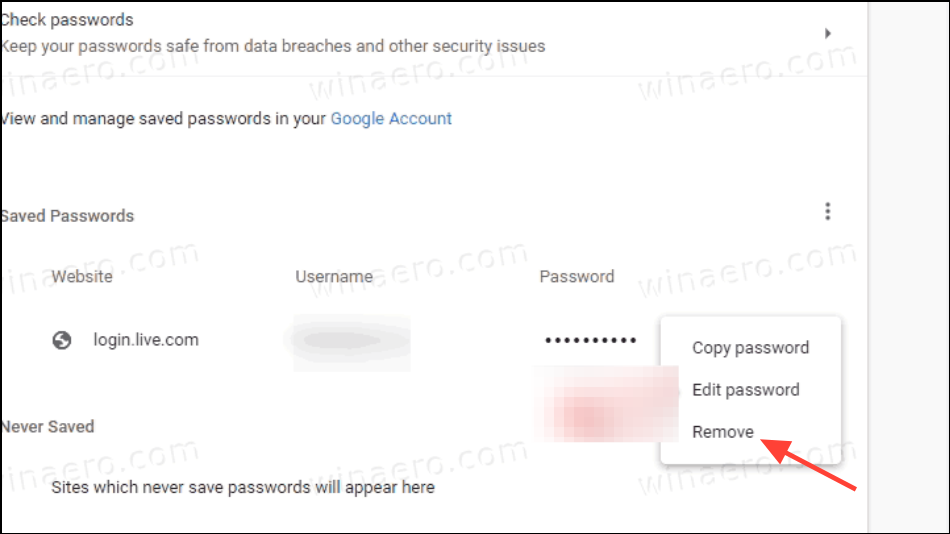 Deleting a Saved Password