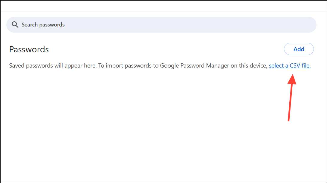 Step 1: In Google Password Manager’s Settings, choose Import passwords.