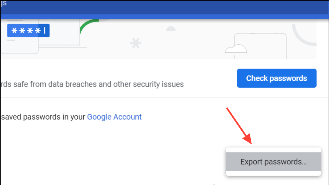 Step 1: In the Password Manager, click the three-dot menu and choose Export passwords.