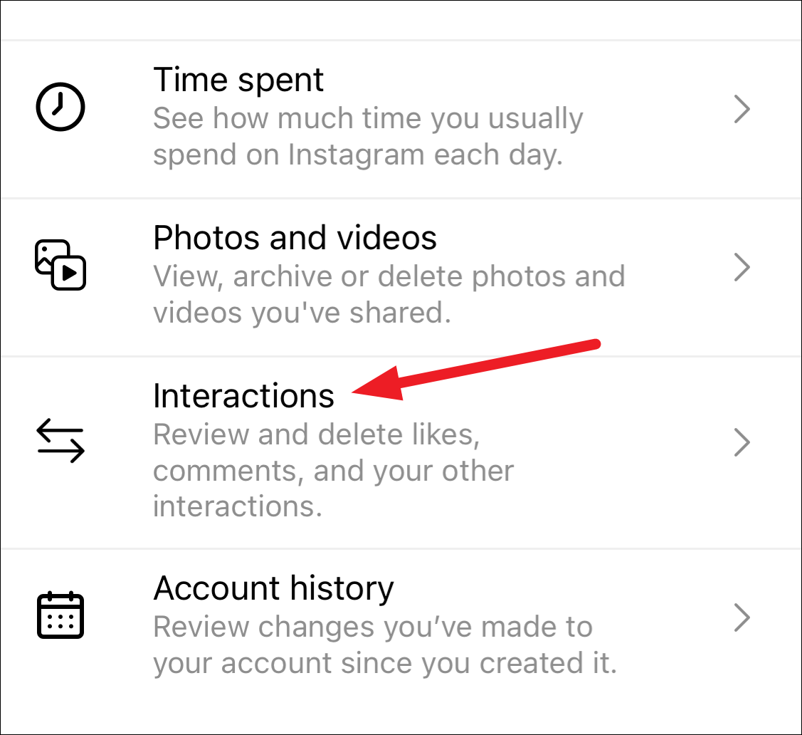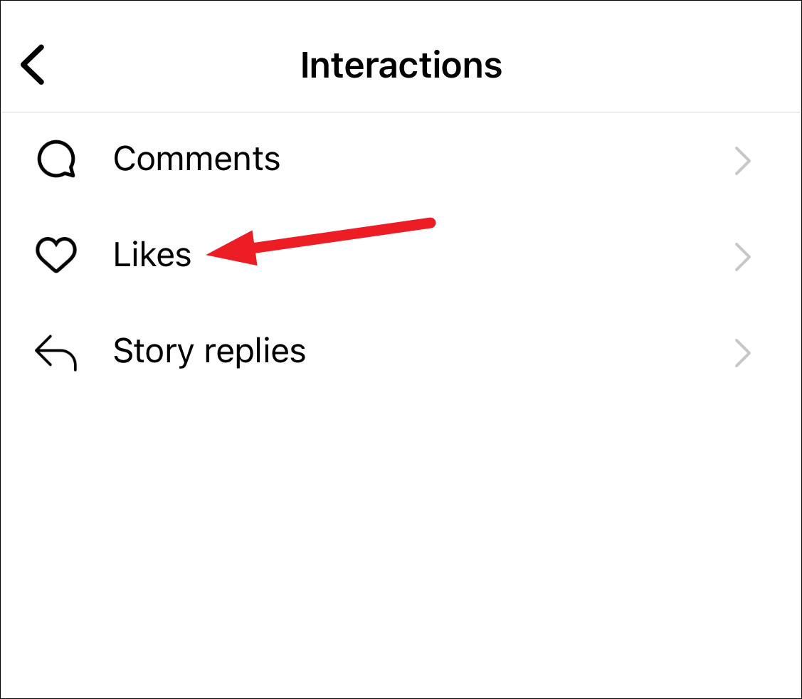 In Interactions, you can see all of your interactions on Instagram, from comments to likes to story replies. Tap the option for ‘Likes’.