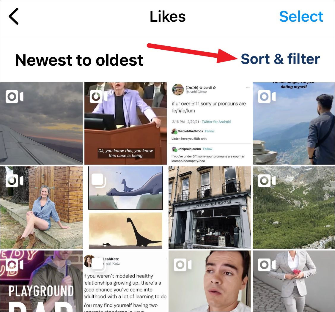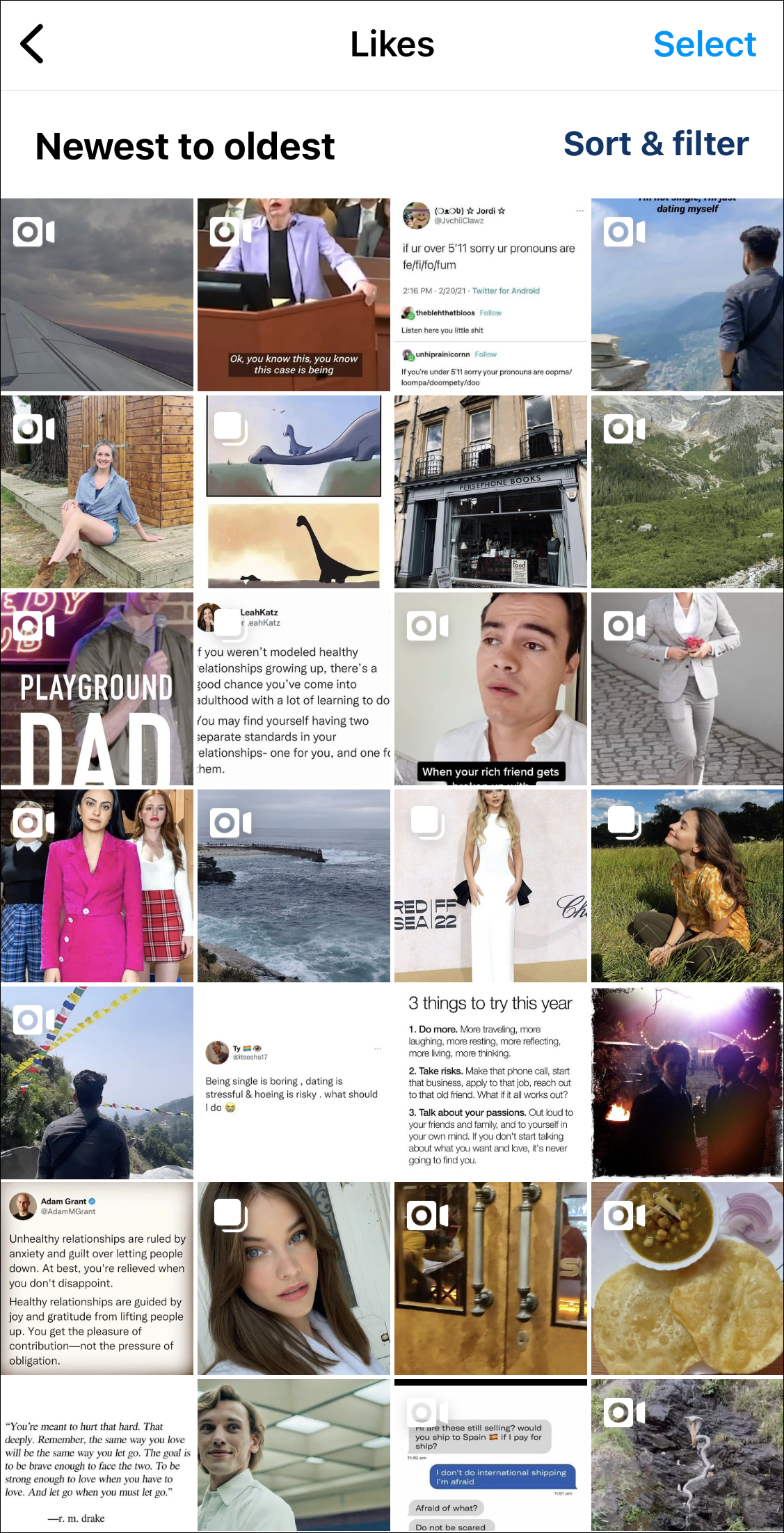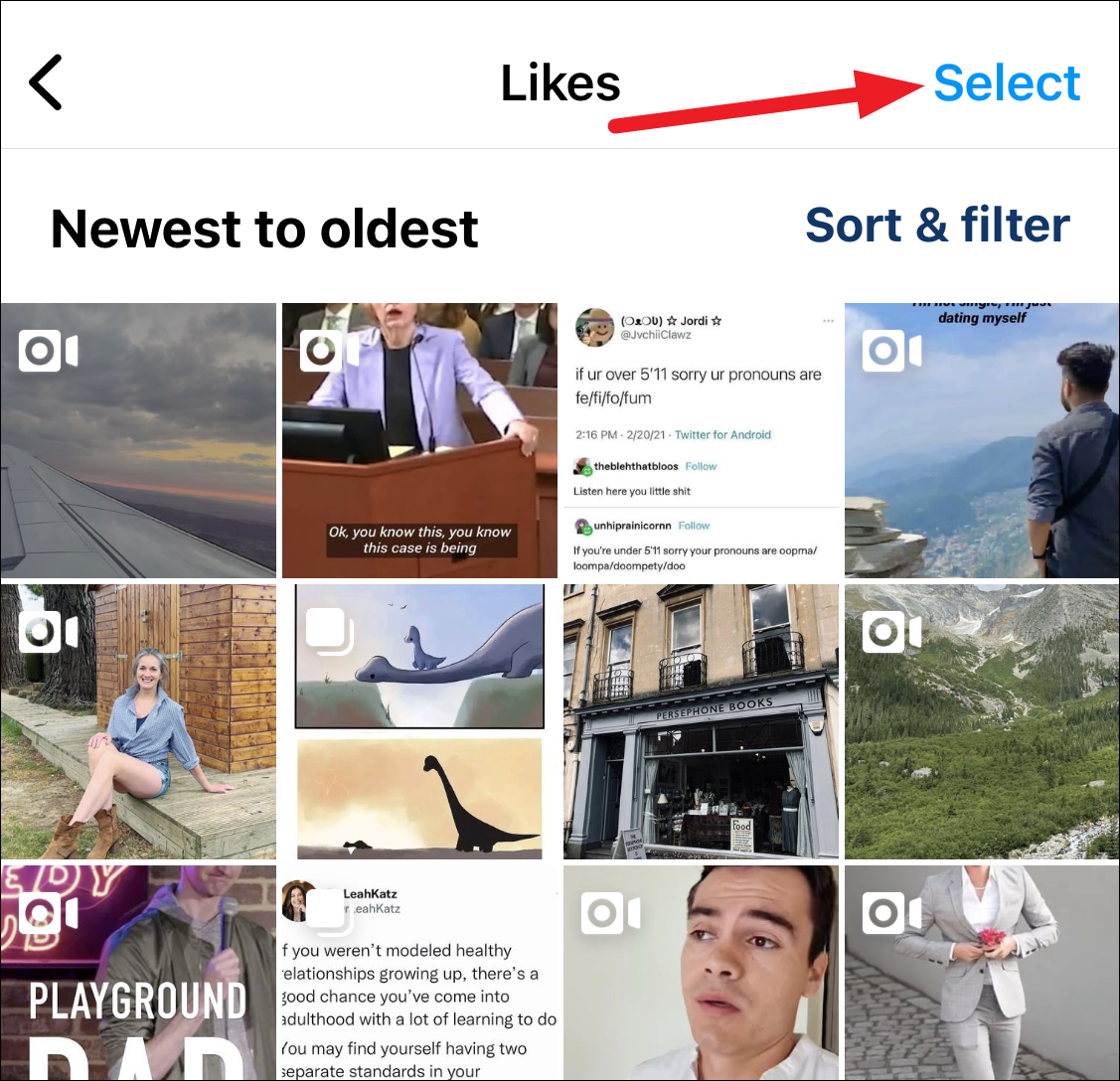 You can also unlike several posts in one go. From the grid of liked posts, tap the ‘Select’ option in the upper-right corner of the screen.