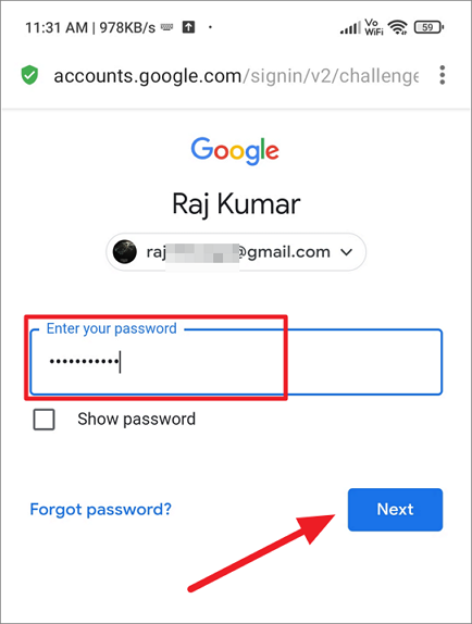 After that, enter your password for that account and click ‘Next’.