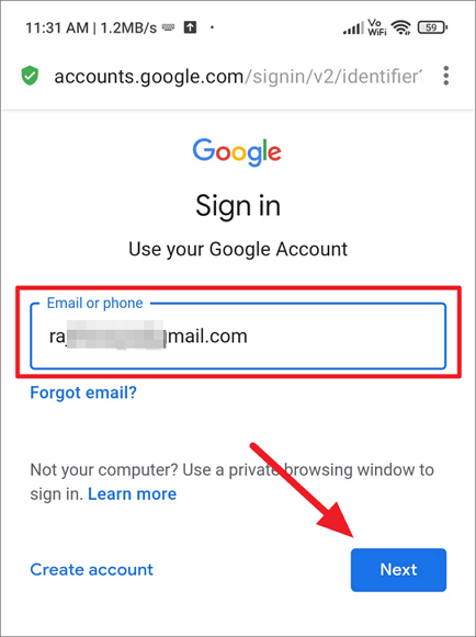 On the next page, enter your Google account’s username or email address which you’ve used to save your passwords. Then, click ‘Next’.