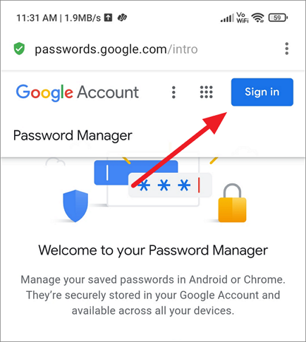 First, visit the Password Manager website and click the ‘Sign in’ button to log into the Password Manager with your Google account.
