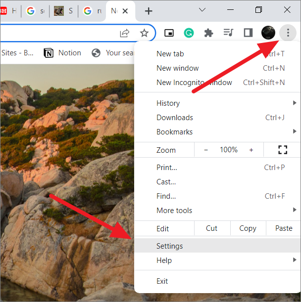 Launch ‘Google Chrome’ on your computer or laptop and click on the ‘Menu’ button (three vertical ellipses) in the upper right corner of the screen. Then, select ‘Settings’ from the drop-down menu.