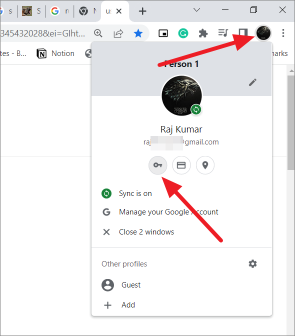 Alternatively, you can also click your profile icon in the top right-hand corner, and then click the ‘Passwords’ option (key icon).
