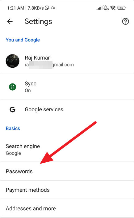Open Chrome Settings and tap the ‘Passwords’ option.
