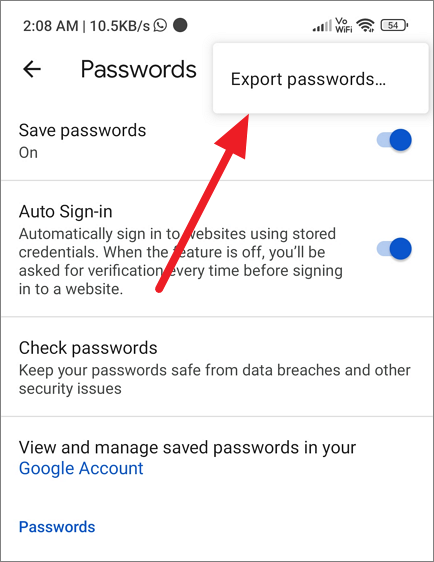 Then, select the ‘Export passwords…’ option.
