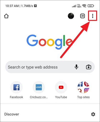 Once Google Chrome opens, tap on the three vertical dots (Menu button) at the top right corner.