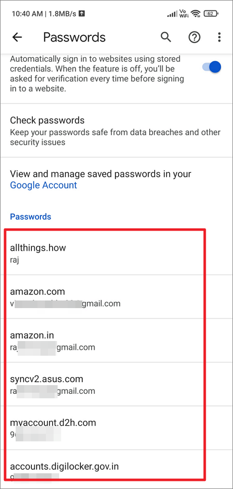 With Google’s Password Manager, you can also access the passwords saved on your Google account through mobile browsers other than Google Chrome such as Opera, Firefox, etc. Here’s how you can view saved passwords in other mobile browsers on android: