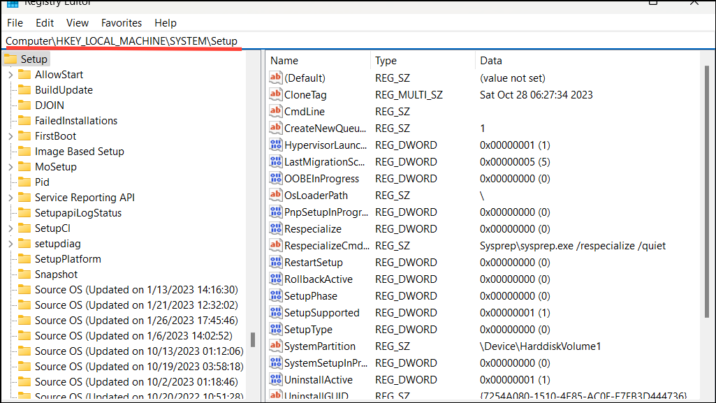 HKEY_LOCAL_MACHINE\SYSTEM\Setup