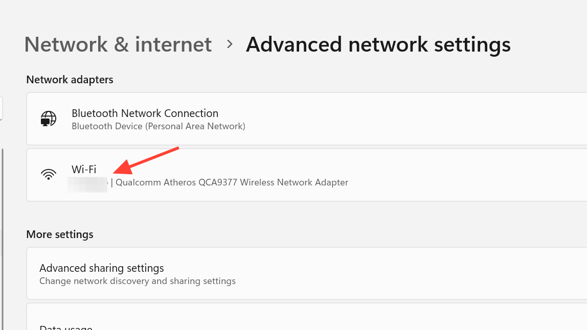 Step 4: Under the Network adapters section, click your Wi‑Fi adapter. The name often includes “Wi‑Fi” or the adapter brand.