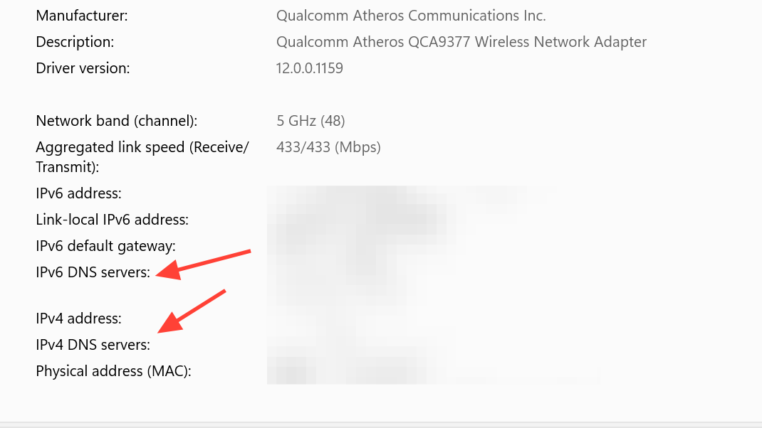 Step 4: Check the DNS servers fields to see which servers the adapter uses to resolve domain names. The status may also indicate if DNS over HTTPS is encrypted.