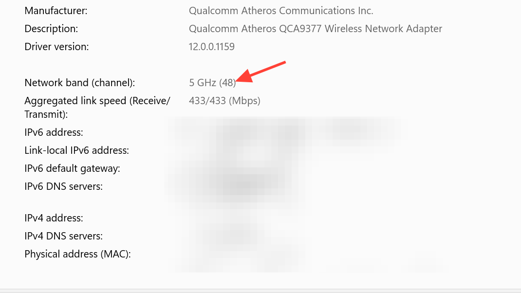 Step 4: Inspect the Link speed and Band in hardware properties if Wi‑Fi speed is much lower than expected. A low link speed or a congested band can explain slow downloads.