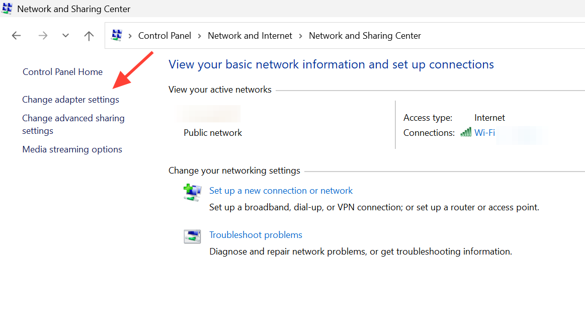 Step 4: In the left pane, click Change adapter settings. This opens the Network Connections window.