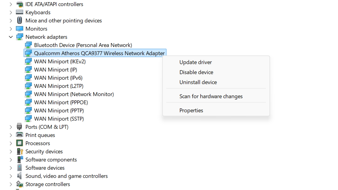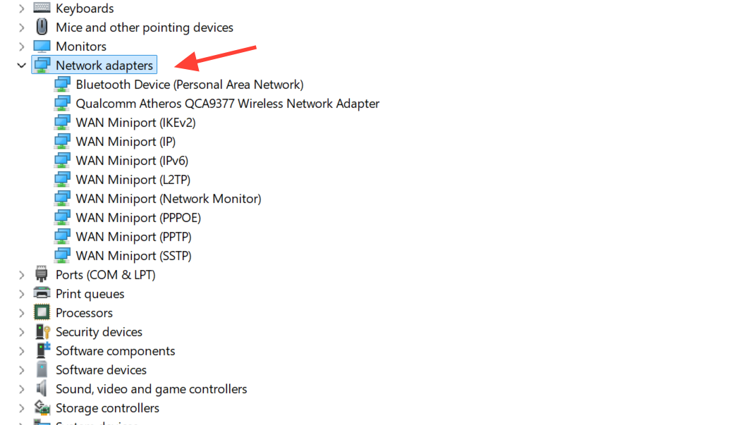 Step 2: Expand the Network adapters section. Look for entries that contain Wireless or Wi‑Fi in their names.