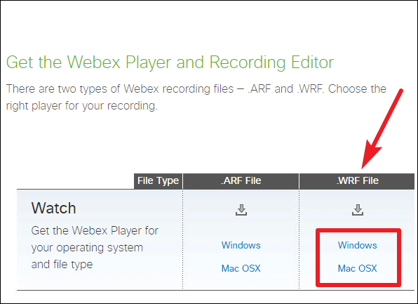 If you have downloaded the shared WRF file onto your computer, or we’re talking about another scenario where you recorded a meeting on your computer with the WRF file format, you need the Webex Player to view that video.