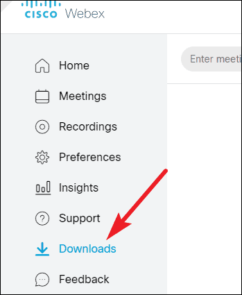Open your Webex meeting site on the browser, and go to ‘Downloads’ from the navigation menu on the left. Then, find the ‘Recorders and Players’ section and click the Recording and Playback link to go to the download page.