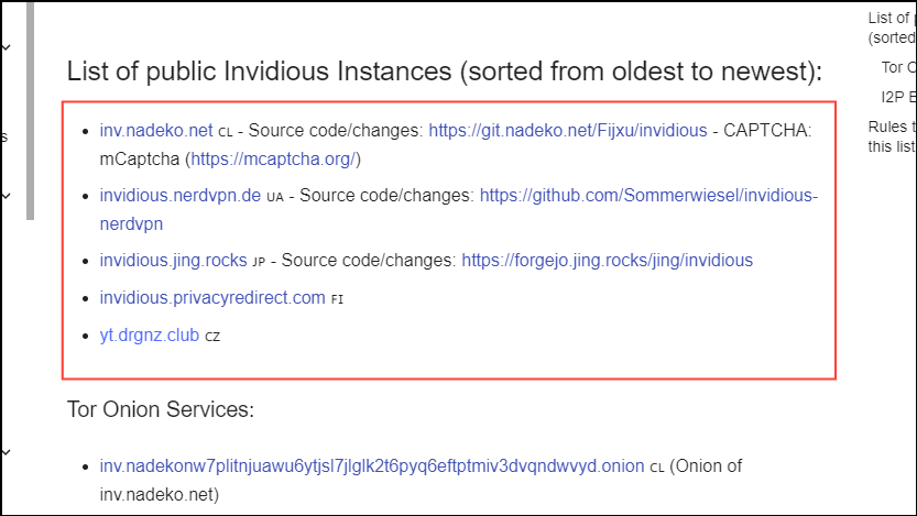 - When you open the Invidious page, you will have to select from various instances.