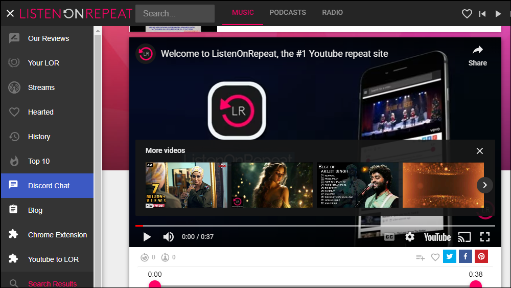 - Another alternative is ListenOnRepeat, which allows you to search for videos using the search box. You can also sign in, which makes it easy to go back to your favorite videos.