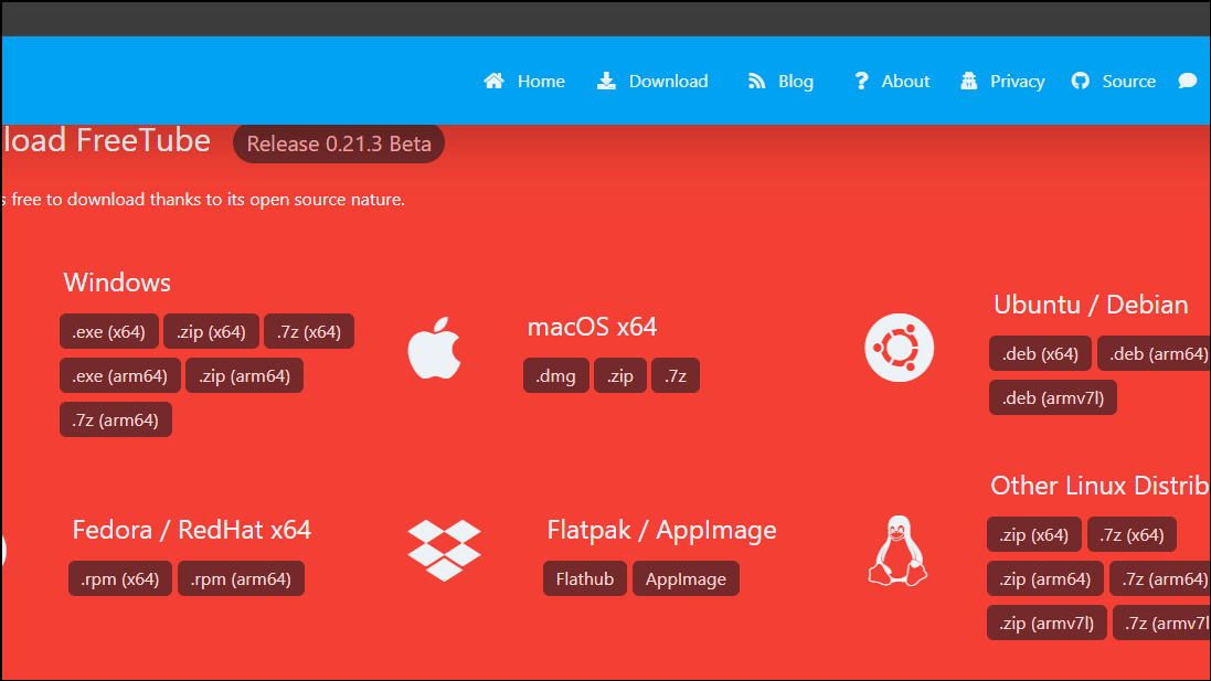 - Visit the FreeTube website and click on the download option.