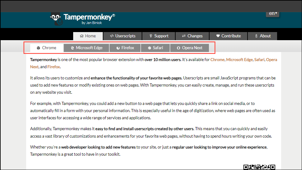 - Visit the Tampermonkey website and click on the browser in which you want to install the extension from the top.