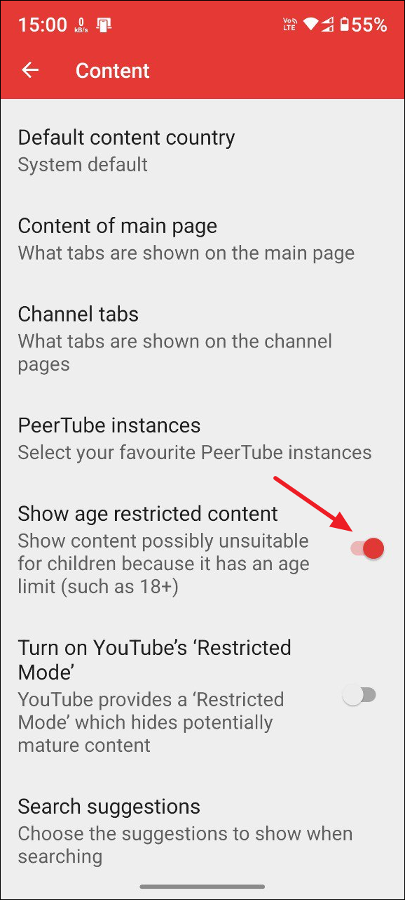 - Then tap on the 'Show age-restricted content' toggle to turn it on.