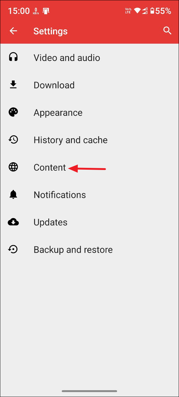 - On the Settings page, tap on 'Content'.
