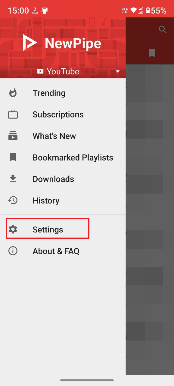 - Now tap on the NewPipe APK you downloaded and install it on your device. Once it is installed, launch the app and tap on the hamburger menu, which appears as three lines on the top left.