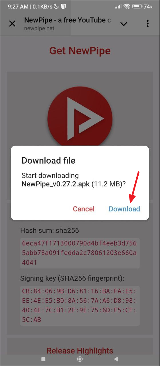 - Tap on download to download the APK to your device.