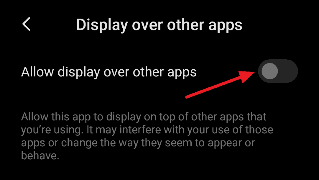 On clicking upon Start now, you will be directed to your phone’s settings option where you will be asked to give permission to Zoom to display over other apps. You will have to turn on the toggle switch on this page which will then let you have Zoom’s controllers on your phone screen at all times. This is useful because, in order to stop screen sharing with your friends at any point, you will not have to go back to the Zoom app all the way.