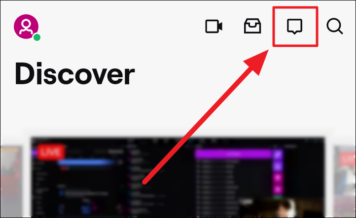Launch Twitch on your phone and tap the icon with a speech bubble to the top right of the screen. This is the ‘Whispers’ button.