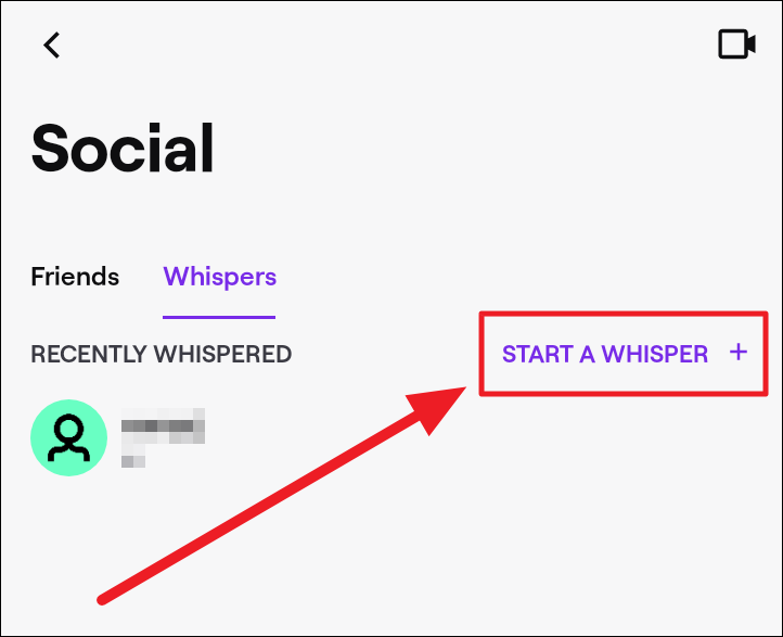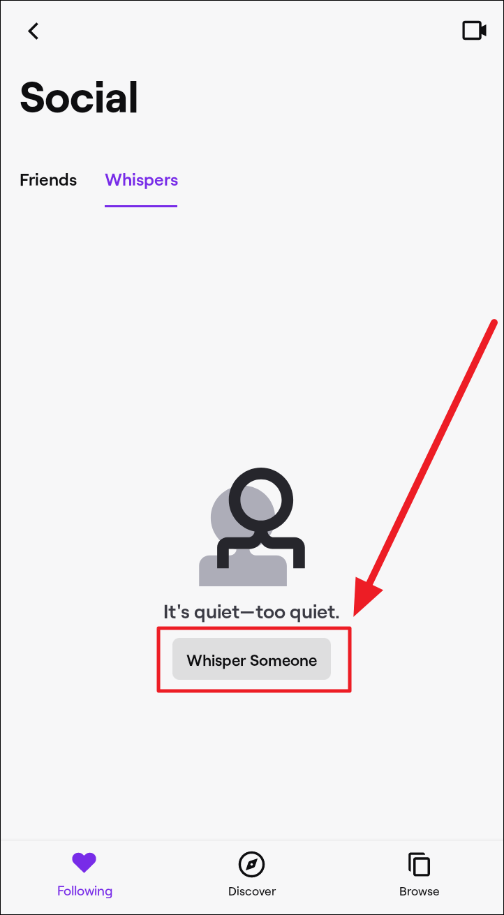 If it’s your first time whispering, you will see a ‘Whisper Someone’ button on the ‘Whispers’ tab. Tap this button to start whispering to someone.