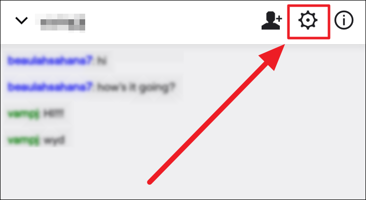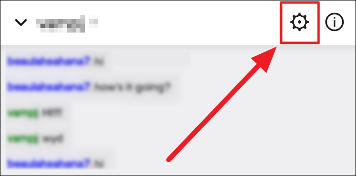 You can also hide a whisper from the conversation screen. First, tap the ‘Settings’ button (gear icon) to the top right corner of the chat screen.