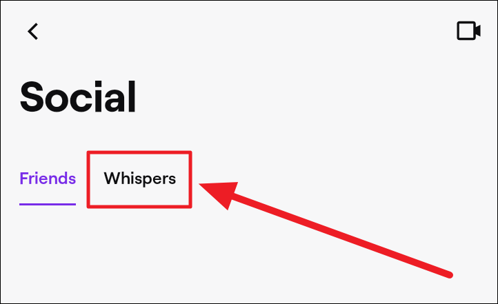 You will land on the ‘Friends’ tab on the following ‘Social’ page. Tap the ‘Whispers’ tab, right next to the ‘Friends’ tab to get whispering.
