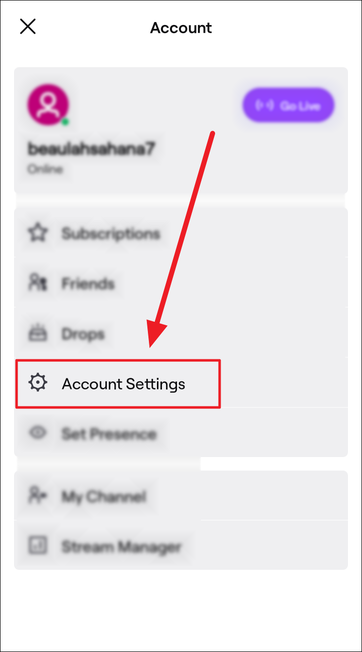 An alternative. Head back to your Twitch home screen and tap your user profile button to the top left corner.