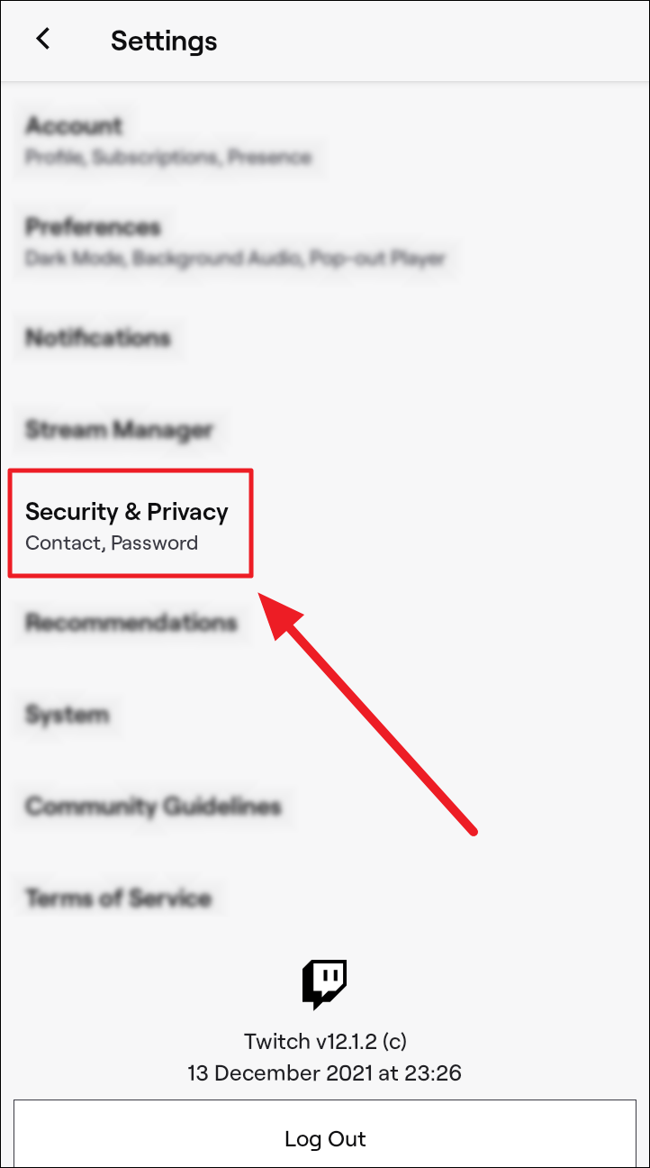 Tap the ‘Security and Privacy’ option on the ‘Account settings’ screen.
