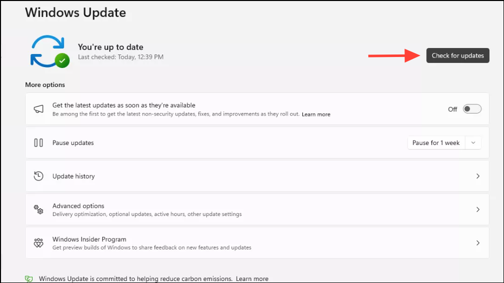 Step 3: Click on Check for updates to search for the latest updates for your system.