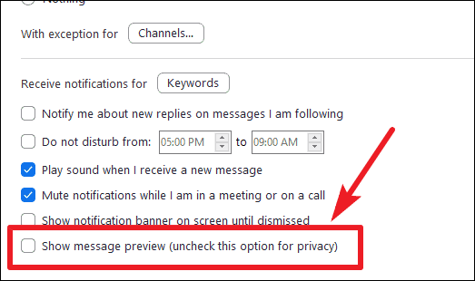 A lot of important communications take place over Zoom chat, and a lot of them could be highly sensitive. If you have security concerns about the messages and don’t want people to be able to have a peek at your messages, you can disable the message previews in notifications.