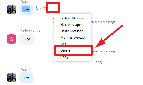 To delete the message, click on the ‘More’ option (three dots) next to the message in the chat screen and select ‘Delete’ from the context menu.