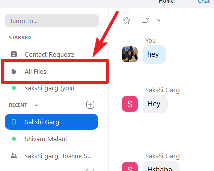 In the chat window, go to ‘All files’ from the navigation menu on the left to open all files and images. It even displays the contents in two divisions: ‘My Files’ that only shows files shared by you and ‘All files’ where you can find everything regardless of who sent it.