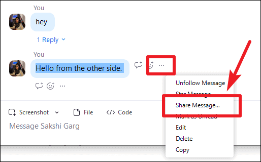 Just click on the ‘More’ option, select the ‘Share Message’ option from the menu, and forward it to your contacts. You’d be done by the time you would have selected the message to copy it.