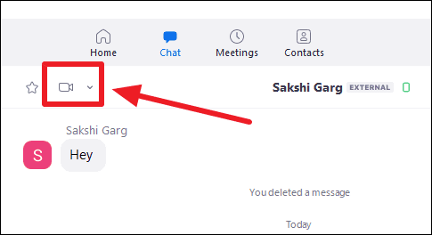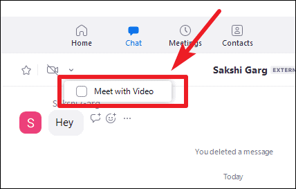 You can even start an audio or video meeting with a contact from the chat without having to go through the hassle of inviting them. Click on the ‘video’ camera button on the top of the chat window to start a video meeting with them.